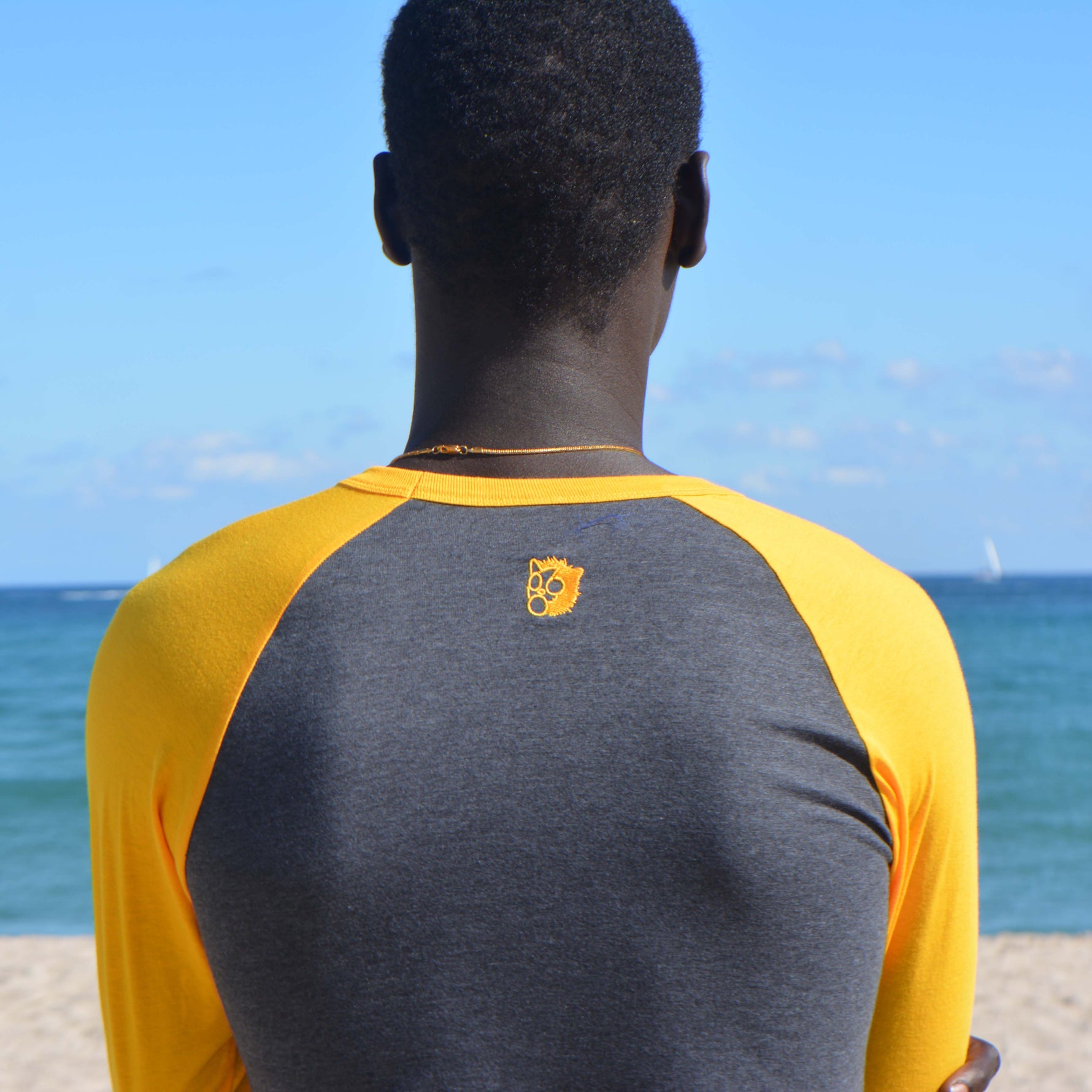 - 4.0 oz. 50% combed cotton 50% polyester 3/4 tee.